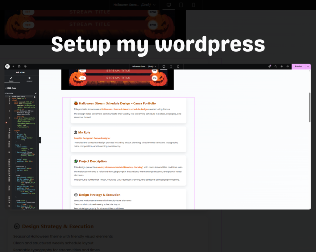 This portfolio demonstrates my ability to handle HTML settings and implementation within WordPress in a structured and efficient manner.